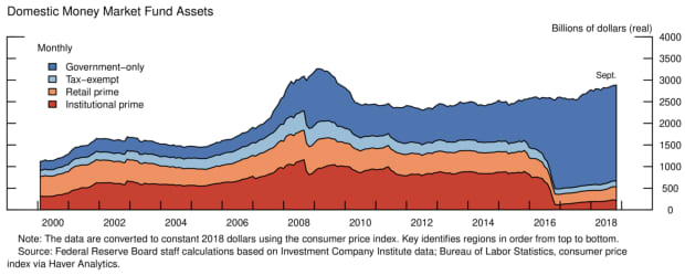 In the wake of this run, after a tortious regulatory process, the Securities and Exchange Commission mandated the money market funds put up gates to suspend redemptions or impose fees.
